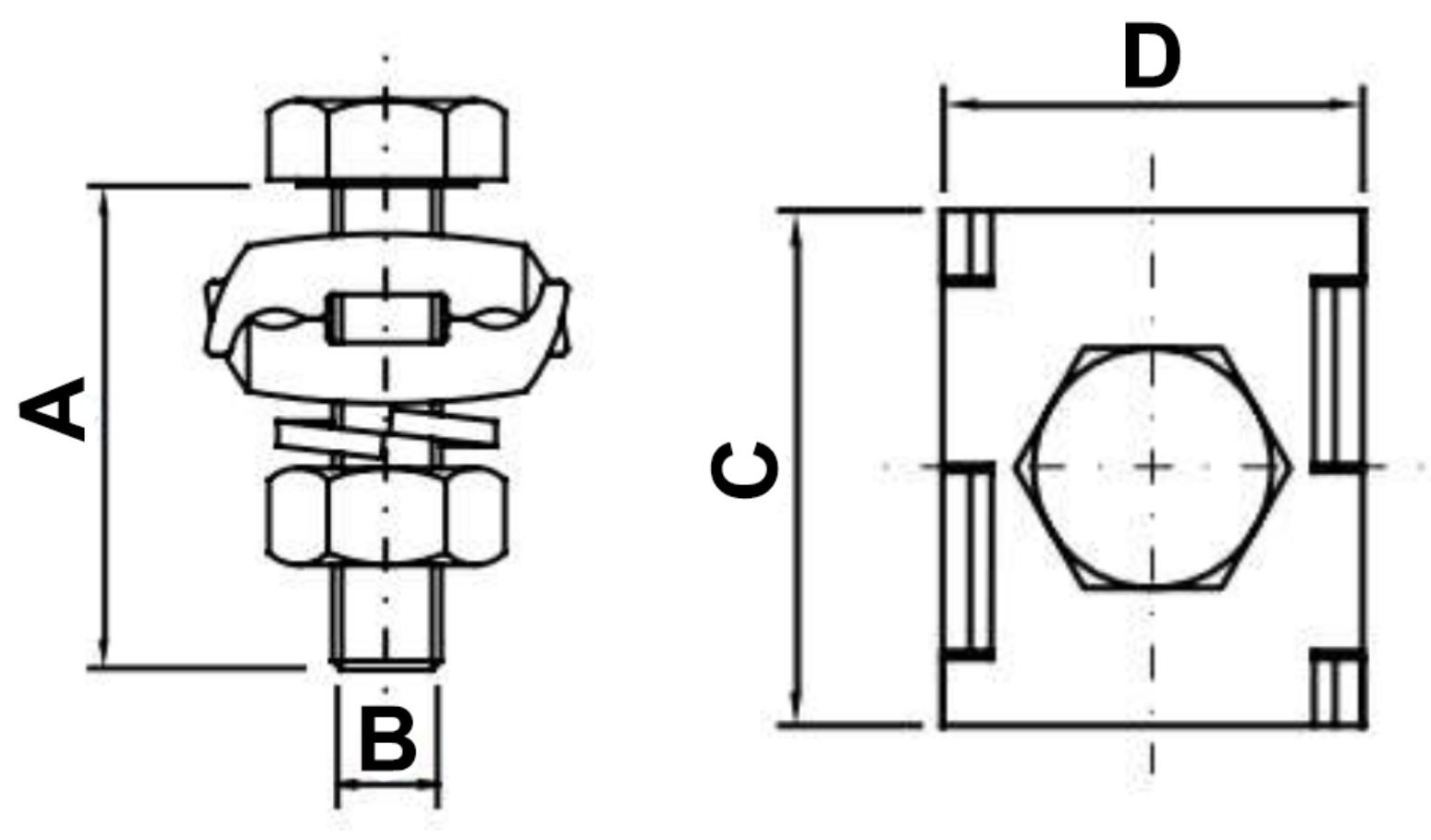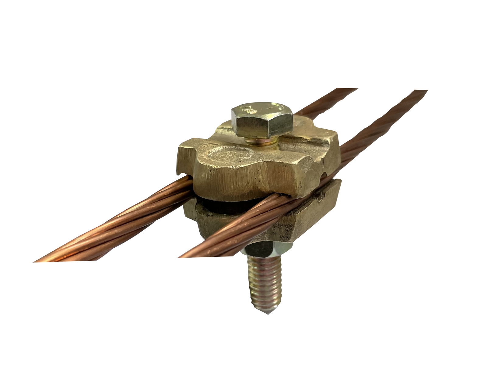 Conector paralelo em latão natural fundido reforçado, para cabos 16 – 70mm² com a derivação central composta por parafuso sextavado 3/8’’ x 1.1/2’’, porca e arruela de pressão com acabamentos bicromatizados. Assim que finalizado obtém 0,120 kg