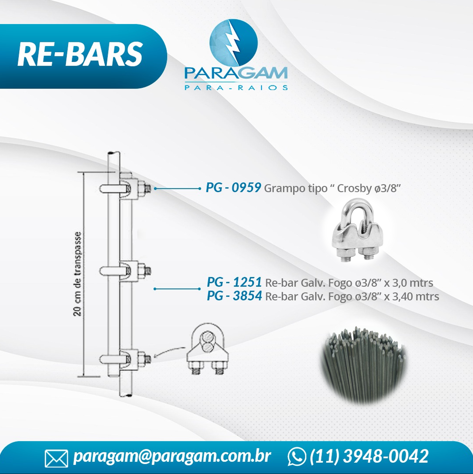 Barra redonda de aço galvanizado à fogo ø 8mm x 4,0m (50mm² de área de seção). Resistividade / m: 8,2 mHoms