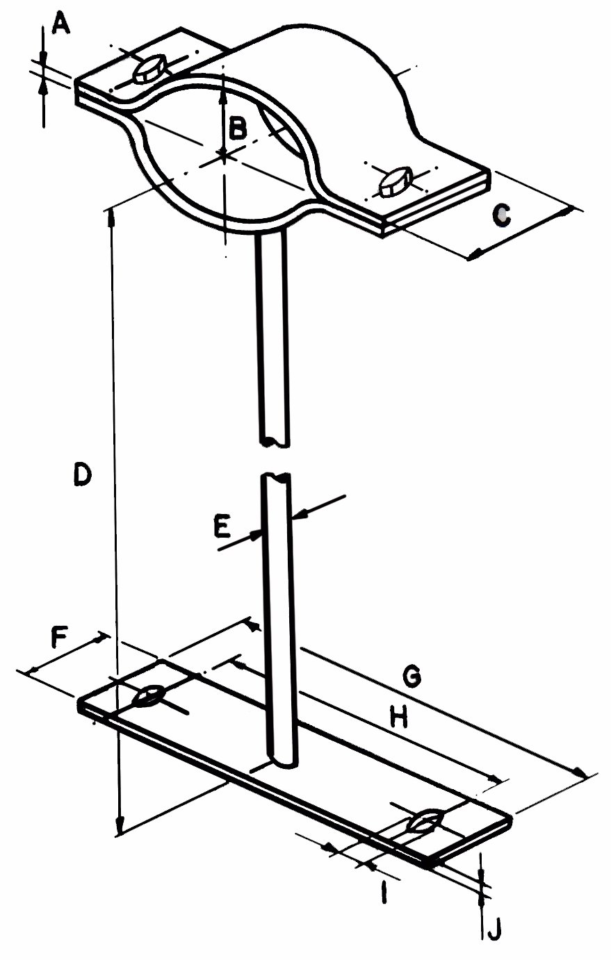 Abraçadeira para eletrodutos, mastros e tubos Ø 1.1/2” com altura H=200mm em Aço Galvanizado à Fogo.